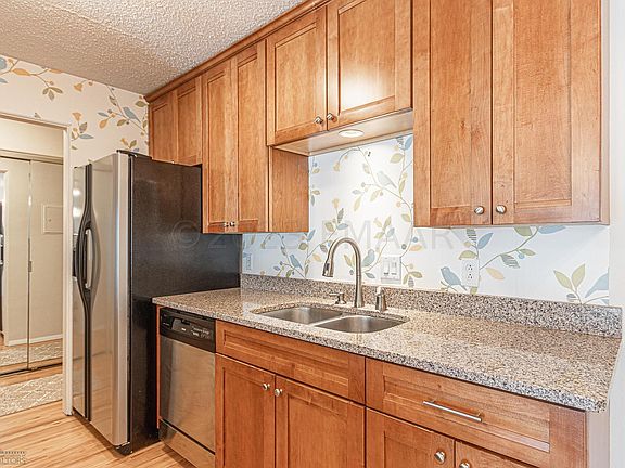 $1000 SELLER CREDIT!! Don't miss this rare opportunity to live affordably in downtown Fargo, with Island Park right across the street. This beautiful 2 bed, 1 bath condo is on the top floor and includes recently replaced cabinets, quartz countertops, laminate flooring, appliances, and lighting. Enjoy the large sliding glass door which brings in tons of natural light to the living area and leads to the private balcony. This condo includes a storage room next door to the unit and a one stall garage with plenty of room for more storage. Laundry is located in the building at no cost. No pets allowed.
