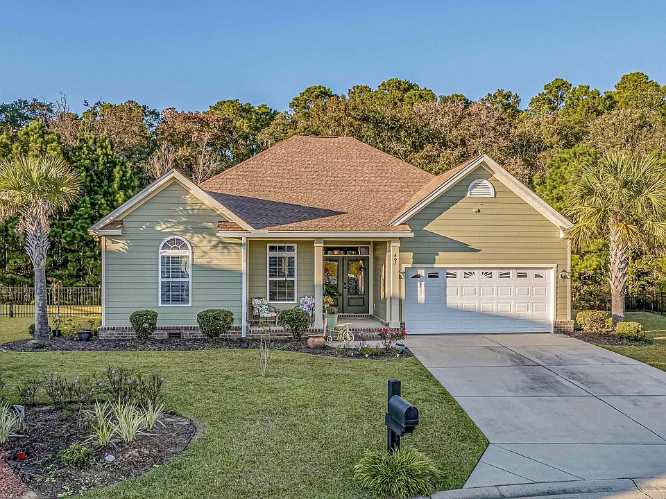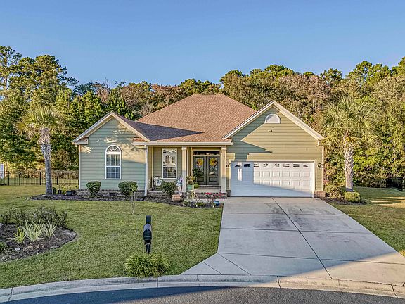 This charming, ranch style home on a cul-de-sac will bring you peace and tranquility. Sit back and relax in your screened in Carolina Room on the back porch or catch the full elements on the back pavers patio overlooking natural wooded land and a pond. This pie shaped, half acre lot provides extra room on both sides for added privacy and peace in the rear. It’s also partially fenced around the garden area which is great for growing your plant collection, herbs, vegetables, and more. Walking in from the front, you have a beautiful double door entrance into the foyer. The living area has a tall, double tray ceiling with recessed lighting, a fan and speakers. This open concept flows to the kitchen which has stainless steel appliances, granite countertops and a large kitchen island for hosting and cooking. The very open and large sized master bedroom also has a double tray ceiling with large windows for natural light, an openable ledge for storage, and a door to the Carolina Room. The master bathroom has double sink vanities, a tub, walk in shower and closet space. There are two additional bedrooms with spacious closets that make great for living spaces or additional office space or arts and craft rooms. The Chapel Ridge HOA is lenient to storing your toys and prized possessions at your home – RVs, boats, trailers and what not. Nicely tucked away off of the convenient Hwy of 707 and near Hwy 31 and 17, Chapel Ridge is not far from many attractions, restaurants, shopping, grocery stores like Lowe’s Foods and Publix, beaches and state parks, boat landings on the Inlet and Intracoastal Waterway, and more in Myrtle Beach, Murrells Inlet and other parts of the Grand Strand. Find your peace in this home!