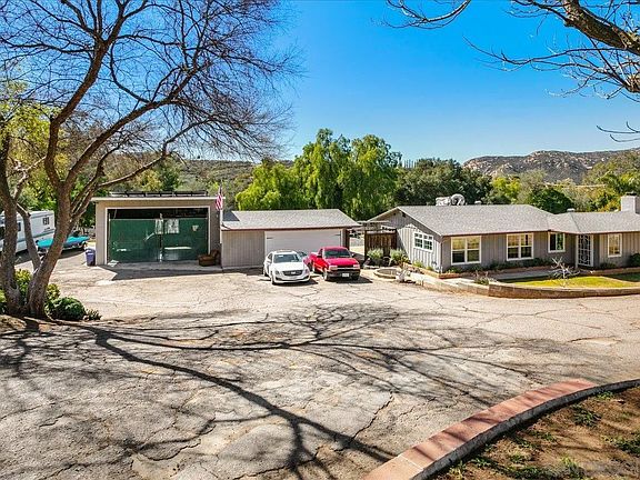 Welcome to country living with this charming single level home on almost one acre of land. This property has so much to offer with PAID SOLAR, a horse pen & corral, giant workshop, a sparkling pool with a new pump and mastic, an outdoor shower, firepit, fenced backyard and beautiful mountain views. Inside you'll find a 4K resolution, 12 camera system with 360 degree views of the property, 5.1 Dolby digital THX home theater system, a Nest thermostat, Cellular signal booster, as well as updated bathrooms, easy upkeep concrete flooring, a charming fireplace in the living room and a conveniently located office/den. Home automation, theater, camera and internet are centralized. The garage has both internet and cable as well as custom epoxy floors. There is plenty of room for RV and boat parking as well as a convenient half moon driveway for easy access. Don't miss this great opportunity to own a little slice of heaven!