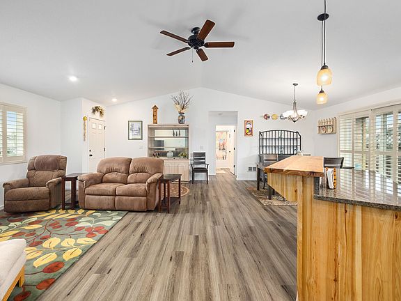 Fantastic price on this ''like new'' one- level home which exudes quality and craftsmanship. Beveled cedar siding is sturdy and timeless setting the expectations of what's inside. Upon entering, you'll appreciate the vaulted ceilings for a spacious, open concept living area. The kitchen is beautifully appointed with pine hardwood cabinets, granite counters and SS appliances incl. a farm sink. Located apart from guest bedrooms, the Master Bedroom does not disappoint and features a large walk-in closet plus private bathroom with dual vanities. Custom wood shutters throughout. Outside there's a covered porch area, a low-maintenance landscaped front yard and storage shed. This home is dialed in!