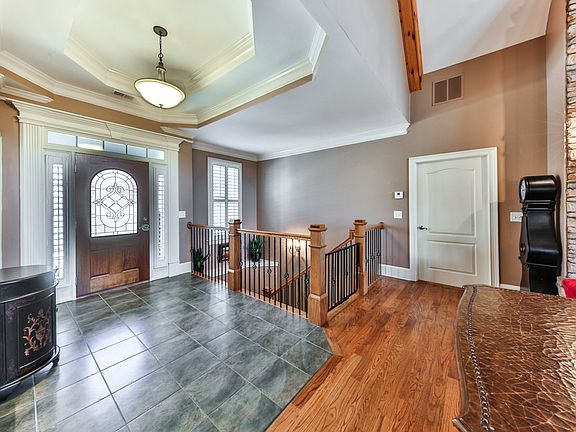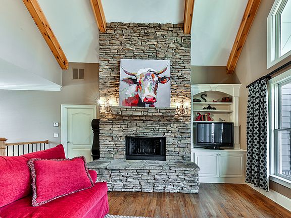 Entertainer's Dream! Great Room with Full Stone Fireplace, Custom Beams, Built-ins and Wall of Windows. Opens to Formal Dining, Gourmet SS Kitchen with Granite, Gas Range, Double Ovens, and Breakfast Bar Island. Breakfast Room leads to the Screened Porch and Full Covered Deck. Master on Main includes His/Her closets, private entry to Covered Deck. Master SPA with granite Vanities, Jetted Tub with TV and Shower. Terrace Media, Guest Rooms, Patio, Firepit and wooded views. In-Law/Teen Suite Upstairs. Huge Laundry, private entrance to 3-Car Garage and Circular Driveway.