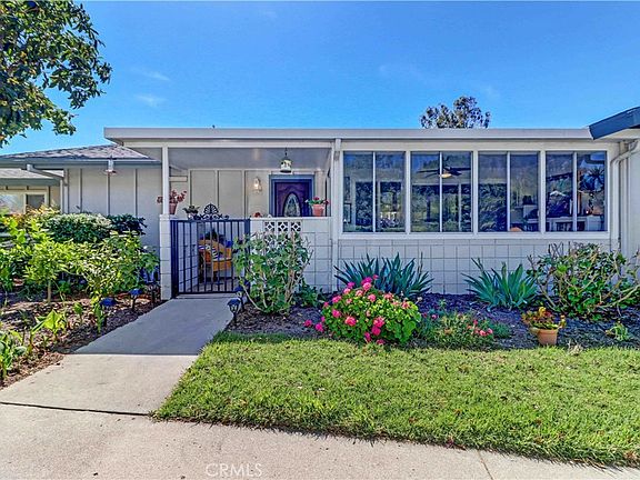 Amazing location near Aliso Creek! Walk right down your street to enjoy this beautiful nature preserve! Remodeled 2BD/2BA "San Sebastian" cottage co-op - no steps, no one above or below and parking right in front. The beautifully upgraded home features an added sunroom, zoned ductless heat/air (2 mini-splits + one heat pump), dual pane windows, laminate floors, washer/dryer, smooth ceilings, crown molding, paneled interior doors and recessed lights. This floorplan is unique in that it has a front and back door, the back entry provides a shortcut to the carport space or park in front for easy entry. The natural lighting is great - eastern morning sun on the front and western afternoon sun in the back plus a chance to catch the breeze by opening both doors. Beautiful wood entry door with leaded glass plus a small, covered outdoor seating area. The adjacent sunroom has 2 access points, ceiling fan, tile floors, and provides a great usable room and approx 120 sq ft added square footage not included in the stated number. Interior features spacious living room area with vaulted ceiling and recessed lights. The sunroom provides a nice extension of this living room area. Remodeled, open kitchen enjoys white cabinets (some with glass fronts for display), granite counters with breakfast bar, stainless appliances, recessed lights with adjacent dining area and back door in between. Stack washer/dryer in hallway closet between 2 remodeled bathrooms - both with large upgraded granite-topped vanities, skylights, updated fixtures plus tile floors. The guest bathroom houses a large tiled walk-in shower with seat and glass enclosure while the primary bath contains jetted soaking tub with tile surround. Bedrooms both have ceiling fans for air circulation, their own ductless mini-split, mirrored closet doors and large windows with cordless honeycomb blinds! You'll love this comfortable home with easy access and a very short walk to Aliso Creek. Laguna Woods Village residents enjoy a 27-hole championship golf course, a 9-hole executive par 3 course, pickleball and tennis courts, lawn bowling, gyms, clubhouses, swimming pools, horse stables, gardening centers, artist studios, computer workrooms and classes + over 200 clubs and organizations. ENJOY THE MATTERPORT WALK THRU TOUR - CLICK ON THE WHITE CIRCLES TO WALK THROUGH, 360 ICON TO GO OUTSIDE AND WALKING PERSON ICON TO COME BACK IN