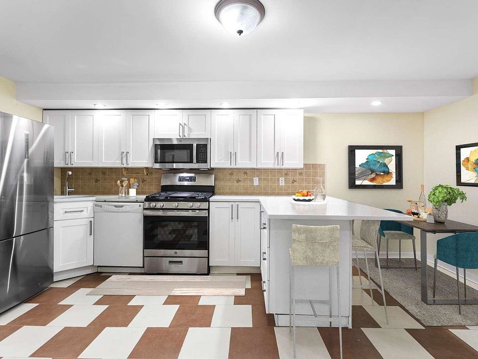 Spacious 2-bedroom condo in Downtown Union City with outdoor space on garden level. Mins to NYC! Easy commute with 25 Mins Bus Ride to Midtown NYC. Less than 5 blocks from Washington Park! Washer/Dryer in Unit with a large, manicured shared yard. The kitchen is with new stainless-steel appliances, cabinets and new quartz countertops. The primary bedroom has charming french doors and walk in closet for storage. Close to vibrant Washington Park, Jersey City Heights, and Uptown Hoboken, you'll have access to great restaurants, fun bars, and easy transportation.