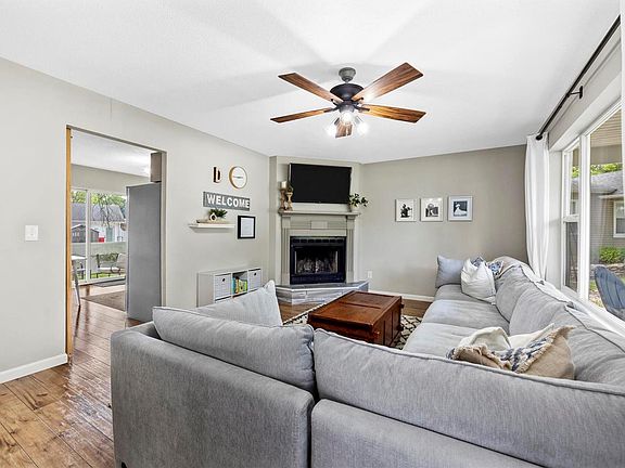 Located in the center of O’Fallon, this four-bedroom ranch is tucked away in a quiet neighborhood. As you pull in on the cul-de-sac, you’re greeted by loads of curb appeal and a large driveway. Through the front door, you enter the living room that features a modern fireplace. The kitchen is located near the back of the house with an eat-in area, pantry, and updated cabinets/countertops. The hallway leads to the full bathroom and four bedrooms (all main level!). The primary bedroom is spacious and features a private half bath. Updated flooring and light fixtures span the entire home. The open basement has a laundry area, storage shelves, and plenty of space to add your personal touch. As you exit the home through the sliding glass door off of the kitchen you'll come to a large concrete patio, shed, and fire pit – perfect for your summer BBQs. Ring doorbell stays with the home. Schedule your tour today! Offers are due by Tuesday 6/6 at 10 a.m.