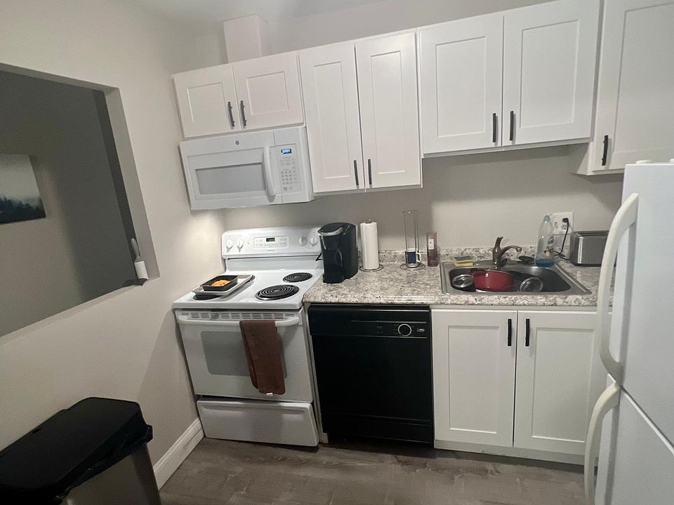 Spacious and renovated top floor unit including heat and hot water! Kitchen has newer cabinets with good cabinet space , over the range microwave and dishwasher. Freshly painted and cleaned. Newer remodeled bathroom. Large bright open Living/Dining area. This is the larger floor plan 1 bedroom with great closet space. Large Living/Dining area with all new resilient flooring . Nice spacious unit with lots of closet space! Large windows and walk out balcony provide great natural light. Heat and Hot water included ! Coin op laundry on site. Plenty of off street parking. 6 minute drive to Weymouth landing and the Commuter rail station. Call or email today for showings. Credit and background checks performed. Heat and hot water, water/sewer included. 2 off street parking spaces. No smoking. No pets