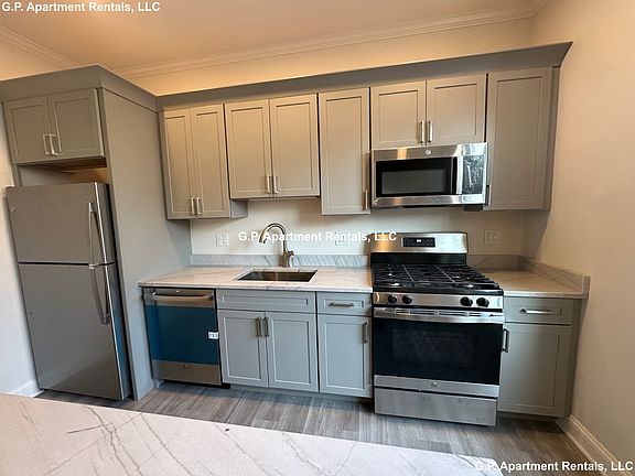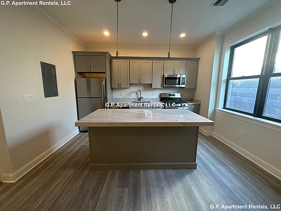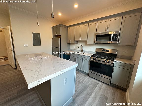 Stunning NEW CONSTRUCTION one bedroom apartment available now! Make this apartment your home. Gorgeous eat-in kitchen with gas stove, dishwasher, microwave and refrigerator. Grand granite countertop island to host family and friends. Lots of natural light. Spacious bedroom with closet. Full bathroom. Shared coin-op laundry in building. No utilities included. Small dogs only permitted for an additional fee. One year agreement.
