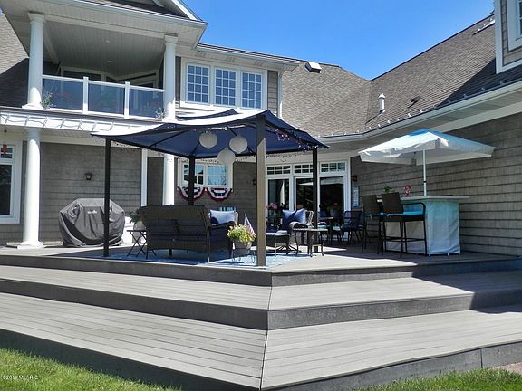 This 4900 sf custom executive style 4bed/4bath home will wow you! Gourmet kitchen with Wolf appliances, multi-color granite & huge island is a chef's dream. From the kitchen, you carry the party outside onto a maintenance free deck with covered pergola. Back inside, there's a stunning ledge stone fireplace for chilly evenings. Experience the luxury of heated floors throughout! Expansive windows, high angled ceilings, walnut floors and built in lighted china cabinets are some of many exceptional amenities. Master bedroom is 19 X 17 w/ sitting room and French doors to private deck. Spa-like shower room spoils you after a long day. 3 car heated garage w/bonus room above - currently used as an in-home gym. A quick walk to the Manistee Golf & Country Club & 1st Street beach. Ideal location!