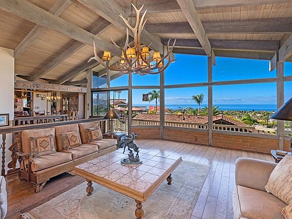 PANORAMIC OCEAN AND HARBOR VIEWS!! That's the view we are offering you from this custom built, one-of-a-kind home that defines classic California style and architecture. Wrap-around glass, vaulted beam ceilings, lots of wood and a hint of the old West. Located on a HUGE, private lot, this reverse floor plan was designed and built around the spectacular ocean and harbor views which can be enjoyed from virtually every area of the home. The lower level features all three bedrooms including an extremely spacious master suite. From here, you will enjoy gorgeous ocean views from the minute you wake up. The spectacular gourmet kitchen features Italian tile countertops and backsplash, 6 burner Viking stove, high end appliances, large center island with prep sink and tons of well thought out storage space and lighting. Enjoy your morning tea or coffee in the warm and sunny, glass-enclosed breakfast room. From here you will look out to the expansive multi-terraced garden with fireplace, fountains and seated barbecue area. Dual main level retreats and formal dining room with bar complete this stunning property. Loaded with space, the double tandem 4 car garage was built with the capability to add another level - think music room, art studio or in-law suite!