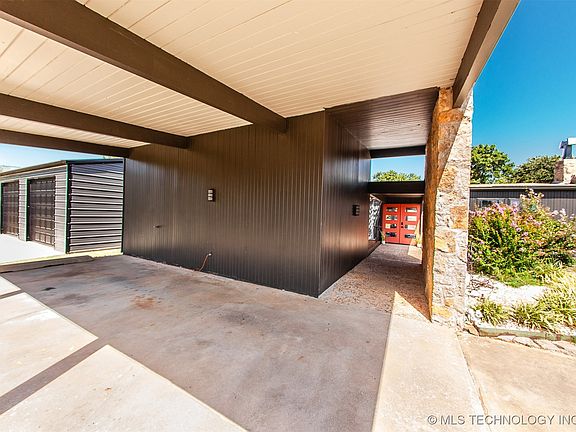 This Rare Piece of Art could be featured in Architectural Digest! The brainchild of esteemed architect, Jack McSorley, who blended a perfect marriage of Mid-Century with Old-World European Charm to create this fantastic masterpiece. Upon entering the home through beautiful new double doors, you immediately feel as though you are stepping into something special with the huge living/dining area featuring vaulted ceilings, unique windows lining one side of the space, and a beautiful European-esque stone wall adorned with a "Country Flame" wood stove/fireplace. The updated kitchen with chef's sink and newly painted navy cabinets adds a pop of color (The navy color is darker than the photo shows). The main house consists of two large bedrooms and two convenient baths. The newly renovated guest quarters/pool house bodes one large bedroom with new hot water tank and private bath situated conveniently beside the inground pool. A large cabana graces the pool area with space for entertaining large groups of family and friends. The recently built 20x30 two-car garage/shop with two garage doors, vaulted ceiling, and room for storage or workshop built with high wind guarantee, provides additional parking to the convenient carport parking. With all the renovations--the addition of new plush carpet in bedrooms, new lighting as well as some original 1969 light fixtures with several made in Germany, and new interior and exterior paint, this home's unique charm will take your breath away!