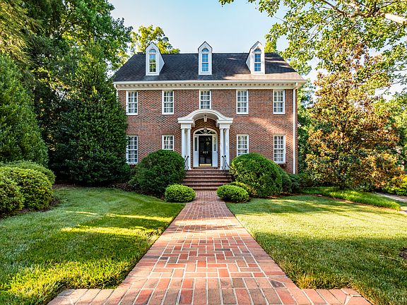 Budleigh is one of Raleigh's most desirable inner-beltline neighborhoods because of its convenience, mature oak trees and highly rated schools. This traditional brick 2-story, on a quiet cul-de-sac, is an excellent opportunity to become a part of this wonderful neighborhood. Inside you will discover features such as nine-foot ceilings, hardwood flooring, detailed trim, heavy moldings, custom cabinetry, arched doorways and three fireplaces. A comfortable family room with a fireplace opens into the spacious, recently updated kitchen featuring new quartz countertops, stainless-steel appliances and a large work island. Grab your favorite book and relax in the comfortable sunroom with vaulted ceilings and copious amounts of natural light. The lower level offers a bonus room with a fireplace that is ideal for toys, games or watching weekend football, golf or basketball. Upstairs are five bedrooms and a flex room that could be an additional bedroom, exercise room or office. The primary bath was just redone with a new shower, soaking tub and quartz countertops. You will enjoy having a morning cup of coffee on the comfortable screened porch with a fireplace. Outside, are a deck, pergola and a private, landscaped lot featuring a secret garden area. The two-car garage is oversized and has an adjoining room that is perfect for a workshop.