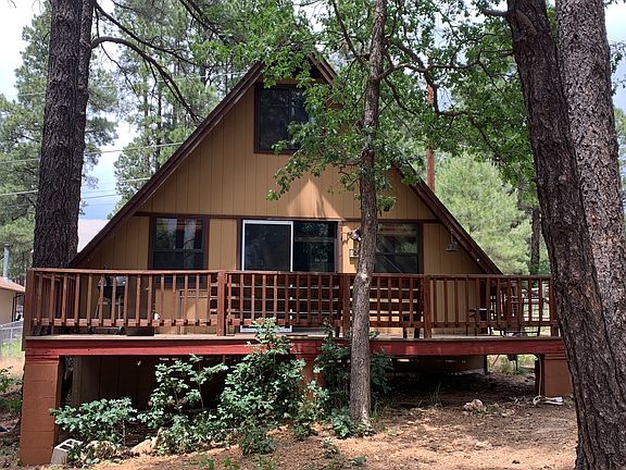 Feel at peace in this clean, bright and airy home or cabin in the pines. Tastefully and cheerfully done with hardwood floors, tongue and groove walls accented with white beams. Main room feels open and spacious. This modern woodsy home boasts newly remodeled bathrooms (one upstairs), several skylights for natural light, and a great open loft. Kitchen has a breakfast bar and stainless steel refrigerator (which conveys). Large front deck with built in seating expands your living space for entertainment and enjoyment. Plenty of space in the front yard for outdoor activities and parking. Nearby forest access, trails, general store and dining. Rural living only 6 miles to Flagstaff. This house would make a cozy primary residence, or could easily be a vacation home/rental. Watch 3D Tour.