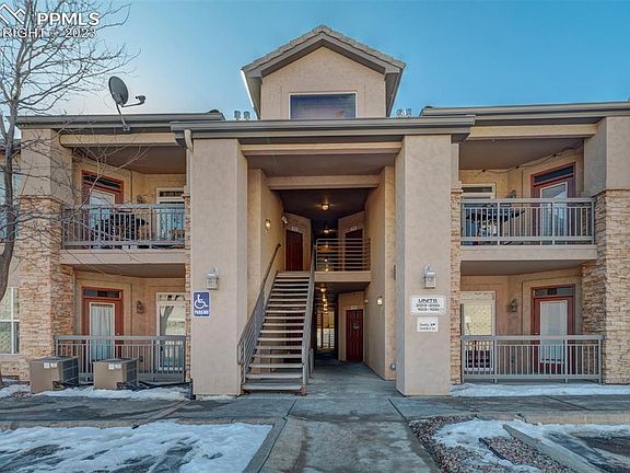 This 2bed/2bath condo is nestled in the Cheyenne Mountain foothills in the desirable D12 School District. March 2023 remodeling updates, never used, include new carpet, new stainless steel kitchen appliances, new light fixtures, new plates on light switches and electrical outlets, newly grouted and sealed tiled floors, new calking in bathrooms, new toilet seats and new paint throughout to include the walls, ceilings, baseboards & trim. The well-designed floor-plan features a great room with kitchen, dining area, and family room. The family room offers a cozy gas fireplace, ceiling fan, and opens to a deck. This expansive 11.5-foot long covered deck is accessed from the great room and the guest bedroom suite. The kitchen, the primary bath, and the guest bath all have tiled floors. The primary suite enjoys a vaulted ceiling, ceiling fan, walk-in closet, oversized 5-piece bath, and has a second 8-foot long covered deck that has a storage closet at one end. The guest bedroom has direct access to a full bath...convenient, and access to the main deck. This well-cared for complex offers a clubhouse. Conveniently located, the complex is walking distance to the Safeway grocery store, numerous restaurants, and other amenities. Jump in the car and you're 5 minutes from Fort Carson, 5 minutes from I-25 interstate, and 4 minutes from Pikes Peak State College. Also, the unit has an assigned carport and separate 6' x 8' closet on the basement level of the complex...perfect for bicycles, skis, luggage, etc. NOTE: HOA insurance covers the building as a whole. Owners need an HO6 policy to cover the interior of the unit to include windows, deck and personal items.