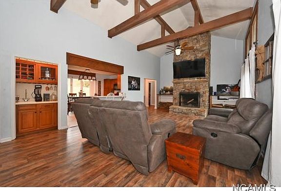 • Fireplace: LIVING ROOM, STONE, WOOD