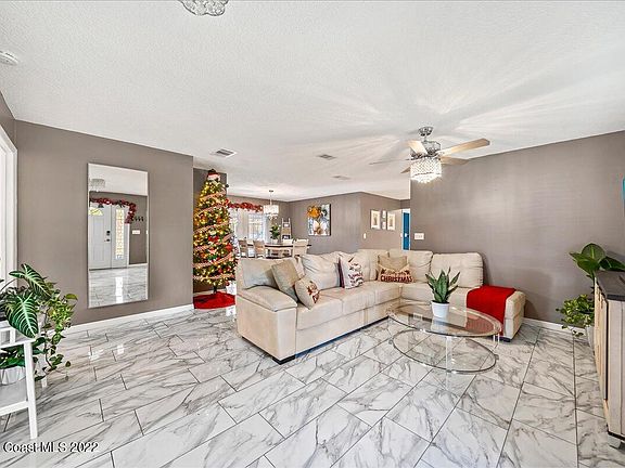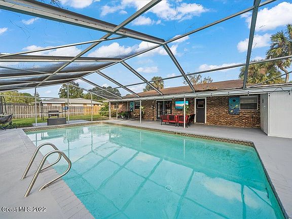 Welcome to your forever home. This beautiful pool home has no HOA, located in a dead end street and conveniently located minutes for 95, 192, shopping centers, Melbourne Square Mall and Melbourne Airport. This home has 4 Bedrooms, 2 bathroom, enclosed pool area which is great for entertainment. This beautiful home has polished porcelain tiles throughout the entire home installed in 2020, Knockdown ceiling texture in the entire home and garage (2020), New garage door opener (2022), completely re-plumbed (2021), Tankless water heater (2021), HVAC 2015. Property needs a new roof, and the pool needs to be resurfaced, pool has a few minor cracks. Also Septic tank is at the end of it life expectancy and would need to be replaced or wait for sewer connection that would be a $3,000 fee.