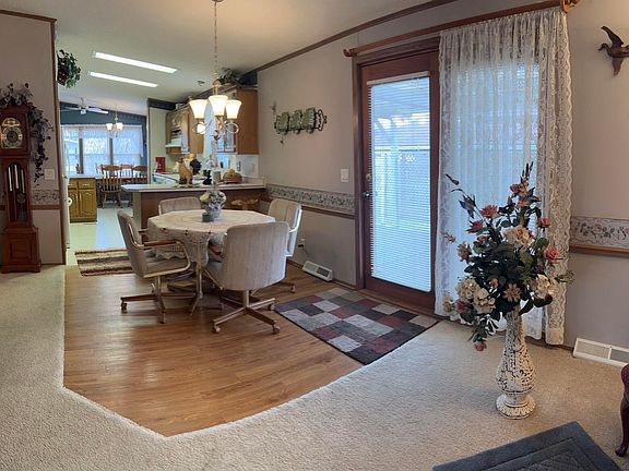 Nicely maintained 3 bed, 2 full bath double-wide mobile home with detatched 2 car garage located in South Towne Mobile Home Park in Wilton, IA. Furnace & water heater new in 2021. Stove, refrigerator, washer & dryer stay. Enjoy the outdoors on the backdoor covered deck. Primary bedroom has bath off primary. Both formal and eat-in kitchen spaces. Buyer must be approved by Kodiak/South Towne Mobile Home Park. Buyers agent must have license to sell/show mobile homes on leased land. Cash preferred or pre-qualified buyer. Approx. $425/month lot rent.