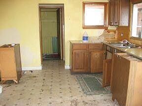 4 Bedroom, 2 Bath House on a large corner lot with chain linked fence. Enclosed wrap around porch. Remodeled Main floor Bathroom. Newer Furnace. Wood Pellet Stove in Living Room, very economical! Detached Garage. Cheaper than Rent. Some Potential for additional remodeling and sweat equity.