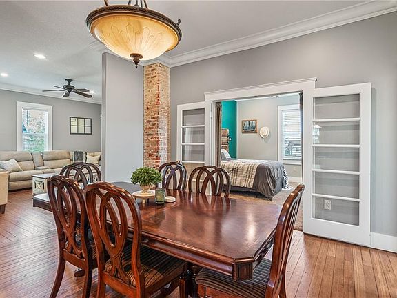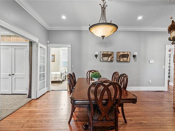 Amazing Ranch with all the right updates and main level living! The original hardwood flooring married with modern fixtures are a part of the allure of the property but the exterior adds so much opportunity! Walking through the entry you have a mudroom, then going to the left the built in washer and dryer station, an entry to the back patio, and to the right a half bathroom. The main room opens up to tall ceilings, a huge updated kitchen with granite, wood cabinets, island with cook top, and a walk in pantry and all kitchen appliances stay! The formal dining area seats a table for 12, it opens to the kitchen so the space is ample and perfect for entertaining. The two bedrooms are toward the front of the property, the primary bedroom has a built in headboard with lighting that stays! The living room opens to the dining area and has an entry to the front room that could be a 3rd non conforming bedroom/office/workout area. There is a powder room with a sink and mirror through the hall to the main full bathroom that has been updated with granite counter tops as well. Through the back patio you have an entrance to the two car detached garage, and the fenced in back yard area. The barn in the back has a graveled floor, perfect for parking machinery/boat/four wheeler -attached is the closed barn and a chicken coop on the end. The property is a total of almost an acre, with the small barn and chicken coop, you have plenty of space for a huge garden or homestead. The back patio is covered and equipped with a TV mount ready for out door relaxing!