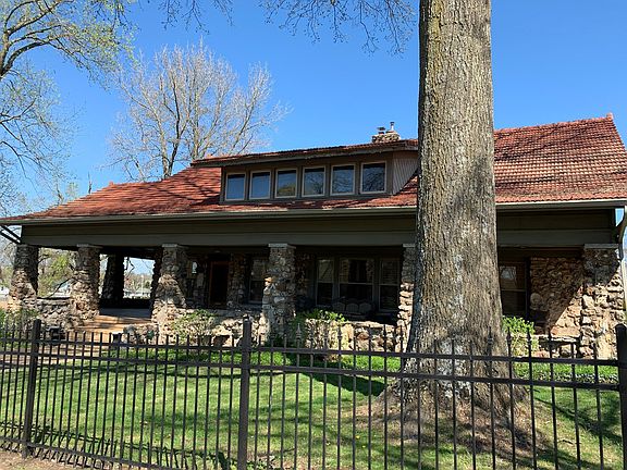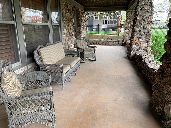 This Stately, Native Rock Bungalow was painstakingly renovated in 2005 and sits on a corner/double lot, surrounded by lush landscaping in Southern Missouri. This home was featured in a PBS spacial because of the different types of rocks used in its construction. You can tell the thought that was put into the placement of each stone. The wrap porch is a romantic step back in time and features concrete floors and rock columns. There is a new kitchen with marble floors. The remainder of the living space has Maple floors and Pine floors that are original to the home. The homes original pocket doors and hardware are still in place along with tongue and groove walls and ceiling on the second floor that is now a recreation room with beds for guests, a large storage room an and bathroom. There is also a nook, perfect for an office. The major renovation in 2005 shows careful use of the space, providing for modern amenities, but keeping the 1913 charm. The main floor has three bedrooms and two bathrooms, large living room that opens to a dining room with fireplace. Light streams in through the numerous windows in the home. There is a basement used for storage and houses the newer boiler used for the radiant heat in the home. There is a guest house with a bedroom and bath, just off the back patio. The yard is fenced and has mature landscaping. This home has been a landmark in our community and belonged to a well-loved doctor. It would make a wonderful Bed and Breakfast!