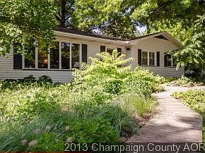This ranch home sits on a quiet dead-end street 2 lots from a neighborhood park, offering easy proximity to schools, bus lines, downtown Urbana, and the UI. Elaborate landscaping includes a front yard cedar boardwalk & bioswale design for managing water runoff. The backyard boasts a sizable garden plot, newer composite deck & 2 patios. The house exterior features low maintenance steel siding. The inside welcomes visitors into a huge front living room with a wall of windows & high-efficiency fireplace with limestone hearth & surround. The kitchen & dining rooms adjoin via an arched doorway. The kitchen features new counters, updated appliances, backsplash & flooring. The basement offers 1,000 square feet of finished space with a perfect 2nd bath location. High-efficiency HVAC new in 2012.