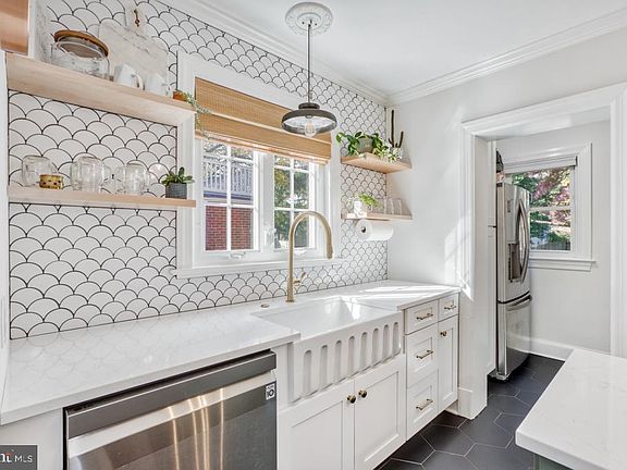 Beautifully renovated brick colonial located steps from downtown Frederick and Baker Park. Several upgrades including brand new kitchen (2022) and electrical panel (2021). Spacious backyard with outdoor stone hearth on patio, perfect for entertaining year-round.