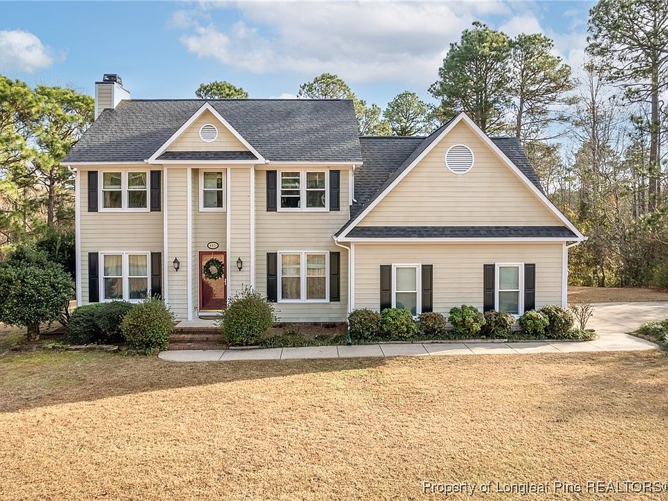 This charming home is an absolute must see!! Over 2400 square feet of heated living space in the well established and highly coveted Hunters Ridge Subdivision. Hunters Ridge is conveniently located in a rural setting but offers easy access to Fort Liberty, shopping, restaurants, and the rest of Fayetteville. This 4 bedroom with bonus room, 2 1/2 bath home offers plenty of space for a growing family and the primary bedroom is located on the first floor, separate from the rest of the bedrooms. Hardwood floors throughout the entire first floor and the upstairs hallway and extremely well-maintained carpet in the master bedroom and the upstairs bedrooms. New insulated windows installed through the entire home in 2022. Enjoy the comfortable evenings from your back deck where there is plenty of privacy as this beautiful home sits on a 2.10 acre lot with a tree lined rear property line and a large buffer between neighbors. Come and take a look at what this beautiful home has to offer.