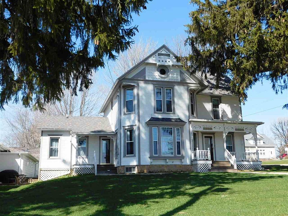 SOLD 3-9-18 This Historic Gem touts original woodwork inside and out! The elaborate detail in the intricate porch supports and decorative trussing are sure to make you a proud owner of this former Guest House. Timeless beauty spouts throughout this lovely home with the wood flooring, leaded glass in door, hinges and trim work. Huge Dining room sparkles with all the light and is complimented by the gallant wood trim. Enter the kitchen from the front porch or retreat to back patio for relaxation. The current piano room could easily be a den, office or even a small main level bedroom. Main floor bath includes shower, vanity, as well as private powder room. Spacious & full laundry room off kitchen with newer washer/dryer. You're sure to enjoy more of the fine carpentry while going up the stairwell to the three bedrooms and bath. All this situated on a large corner lot with off street parking and is a very short distance to the grocery store, park, and all the advantages of living in Scales Mound, IL.