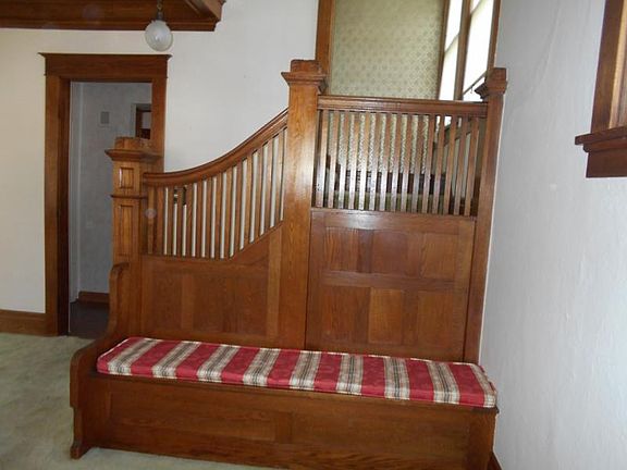 Attractive 2 story 4 bedroom home on a corner lot in town. Home features beautiful oak stair case with built in seating that opens for storage, large living room 15x27 with fireplace and 2 book cases on each side with lead glass. Large picture window with seating and opens for storage. Formal DR 13x15 with large bow window with window seat that opens. Nice country kitchen 11x14 with first floor laundry.1 full bath down and 1 full bath up. Antique ceiling lights throughout this home. Bed down 11x14, bed up 11x12, 11x14, 11x11 and an extra room 9x11. 3rd level has steps to the attic good for storage.