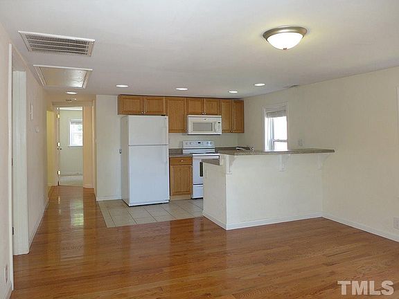 Walk/bike to UNC, downtown Chapel Hill & Carrboro. Renovated with hardwoods in combined living and dining space. Kitchen, bathrooms, laundry all have tile flooring. Carpet in bedrooms. Kitchen has recessed lighting. Kitchen appliances, washer/dryer included. Covered front porch, deck off back. Playground, nearby community pool, tennis, ball fields. Pet w/fee & prior approval. Parking in back. Agent owned. $15/mo filter fee.