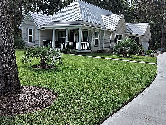 Beautiful coastal home in very desirable The Retreat @ Yellow Bluff. This 3bed 2.5 bath lovely home has a spacious living room w/ gas fireplace . The kitchen has stainless steel appliances and lovely pullout drawers throughout. Also, a nice size office and washroom with sink and drawers! Side porch takes you to oversize garage with overhead storage shelving. Extra large concrete slab for boats, cars and golf cart. Deep lot that backs up to woods in conservation. Storage building out back.HOA includes dock, hoist, pool and clubhouse. Easy access to the intercoastal waterway!