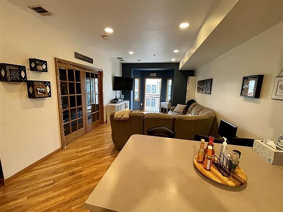Only half fee! 3 bedroom 2 bathroom w/ 1 parking space & balcony on fab Grand Street block available for April 1st occupancy. Open floor plan, kitchen with plenty of storage, dishwasher and breakfast bar. In unit washer and dryer, hardwood floors, central air, and a common outdoor space complete the package. Just around the corner from NYC bus, grocery store and dining/night life.* Rent includes one parking space. Unit will be freshly painted and cleaned. Pictures from previous tenant. Half fee paid by LL! Tenant responsible for half ($1,725) realtor fee, 1.5 month's security, $40 per person application fee. Rent includes one parking space. Unit will be freshly painted and cleaned.
