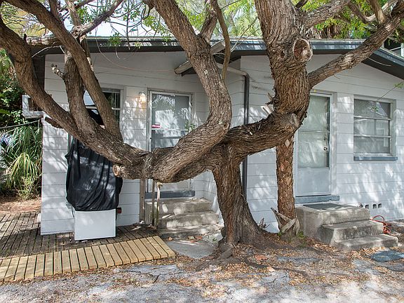 High ceilings historic concrete block home w/carpeted over wood floors. Spacious layout w/separate entranced studio unit optional. Full eat-in kitchen, 2 bedrooms main w/updated bath between. Plus optional studio w separate entrance. Outside shower and decking easy access in and out front and rear. This is a real CapeCod type of an original beach house located in the heart of Pass A Grille section south of the DonCeSar Resort Hotel. Full cable & internet wifi. Includes all utilities, cable, internet, linens, kitchen items, etc. This is a vacation seasonal rental. Parking at your rear door off-alley. This property has a private in-law studio which is optional.