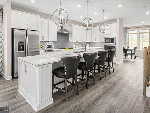 NVHomes at Greenleigh Executive Collection. Our Andrew Carnegie Detached Garage features a MASSIVE finished Rec Room in the basement, Courtyard in between garage and house, chef’s kitchen with exposed hood and separate cooktop, 7” plank flooring, luxury owner’s suite featuring a spa bath including dual vanities and a roman shower, 9’ ceilings, and more. This floorplan can be up to 6 bedrooms and 4,111 sq ft with an optional fourth level!! Greenleigh’s amenities include pool, clubhouse, fitness center, trails, dog park, and onsite shopping. Photos taken at a model - for viewing only. For a limited time, NVHomes is offering Closing Costs! Model hours apply, please call to schedule an appointment.