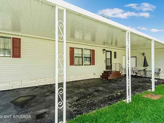Beautifully maintained double wide with white kitchen and appliances. Corner Kitchen sink is offset with double windows. breakfast bar opens to the dining living room. Wood laminate floors in living room dining area and 2nd bedroom and halls. Newer carpet in bedrooms. Upgraded electric service. master bedroom as walk-in closet and shower. Full size washer and dryer. Partially resurfaced driveway and covered carport with enclosed shed with electric outlet. Perfect move in condition.