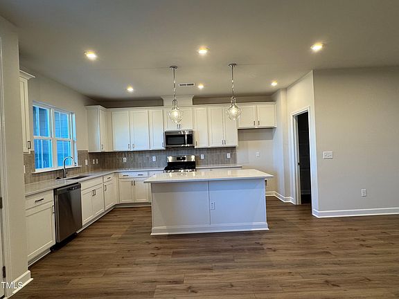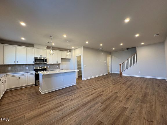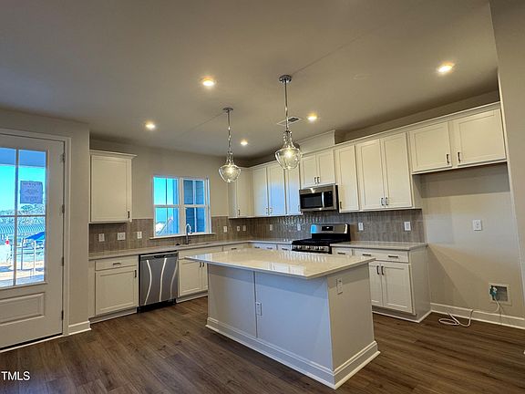 MOVE IN READY The WILSON is a spacious 3 BR/2.5 Bath townhome with attached 2 car garage. Open floor plan with kitchen, dining & family room on the first floor. The kitchen includes a large island, pantry, pendent lights, white cabinets & quartz counters. EVP throughout the first floor. Oak tread staircase leads upstairs to a loft. Nice space for additional entertaining area or home office. The second floor also includes the primary suite with tiled shower and large walk in closet. Plus, Two additional bedrooms, full bathroom, and laundry room. Dropzone at garage entry. 9ft ceilings on all floors. Other features include: tankless gas water heater, Ring doorbell, Schlage Front Door Lock, electric car charging outlet, whole house surge protector. The community features a 15 acre lake, pool, parks, and trails! A brand new clubhouse and park are starting construction now!