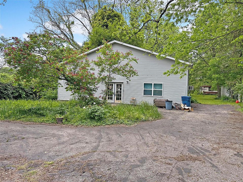Check out this 2 1/2 +- Acres of Land. Front Lot plus Rear Acreage with home and 3 storage buildings. Large 19x43 Recreation Building attached to home. 2+ bedroom, 2 bathroom. Very unique home with so many possibilities with this property. Home is being sold AsIs, Seller can not make any repairs. All contense in the home and stroage units can stay. Home need much TLC but in a great location and what a piece of property!
