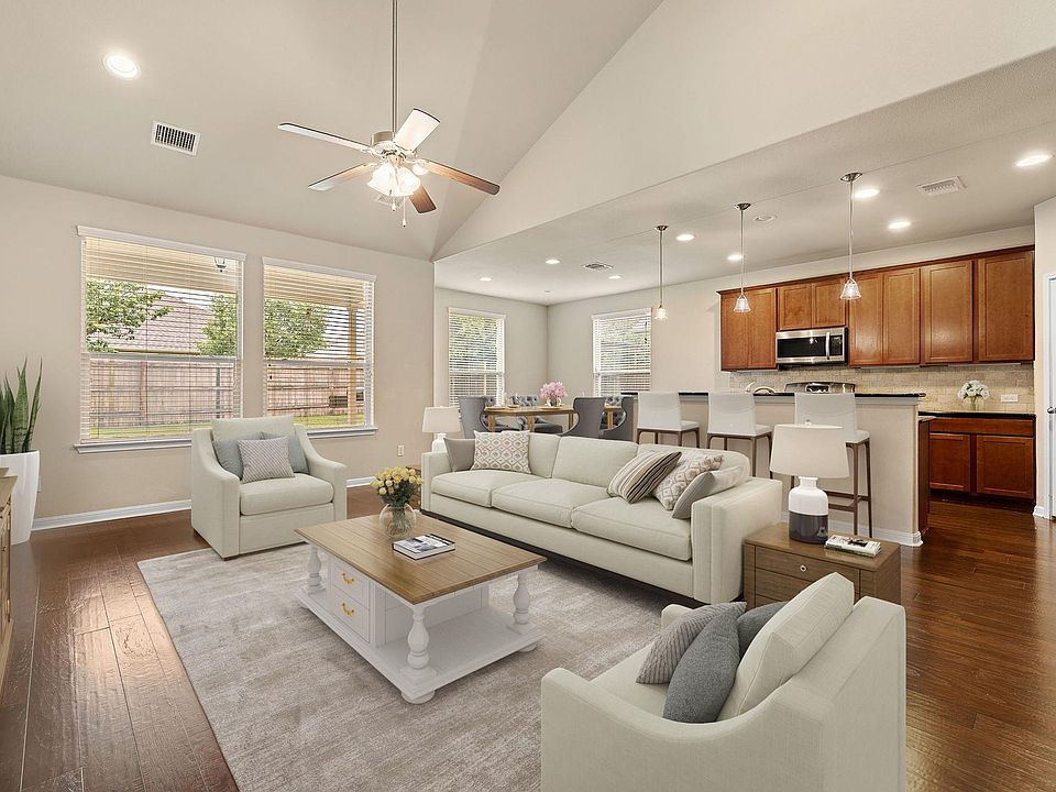 Step into style and space where everyday living feels anything but ordinary! This stunning two-story home offers over 3,000 square feet of thoughtfully designed living space, with 4 spacious bedrooms, 4 full bathrooms, and the kind of layout that effortlessly balances functionality and charm. From the soaring ceilings to the warm wood floors, every corner invites you to spread out, entertain, and make memories. At the heart of the home, you’ll find an open-concept living area anchored by a warm, welcoming kitchen complete with granite countertops, an abundance of cabinetry, and stainless steel appliances. A formal dining room with a modern chandelier adds a touch of elegance for hosting special occasions, while the large dedicated office with French doors provides a quiet space to work from home. Upstairs, a spacious loft offers additional flexible living space, perfect for a media room, play area, or second living space.Three secondary bedrooms and two full baths complete the upper level, creating privacy and room for everyone. Outdoors, enjoy a private backyard with a covered patio-ready for summer BBQs or peaceful morning coffee. Located within walking distance of the city’s light rail, H-E-B, shopping, dining, and local eateries, convenience is truly at your doorstep. Zoned to highly-rated Leander ISD schools, this home offers the ideal blend of location, layout, and lifestyle. Don’t miss this opportunity to own a well-appointed home in the heart of Leander with easy access to major commuter routes and urban amenities!