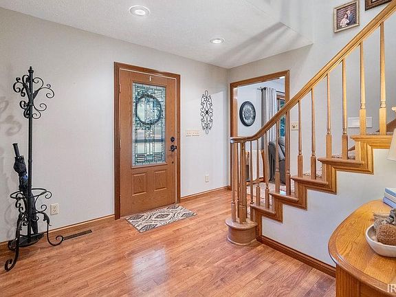 Welcome to the desirable Deer Knoll subdivision! This beautiful home is perfectly positioned on the water, offering peaceful views and a one-of-a-kind setting. Featuring 4 bedrooms and 3 full baths, the home boasts an open layout designed for both comfort and entertaining. The kitchen is fully applianced with stone countertops and a scenic view of the backyard, flowing seamlessly into the inviting living room with a brick fireplace and access to a custom deck overlooking the pool. Rounding out the main floor is a formal dining area, second living space, laundry room, and full bathroom. The master suite provides a private retreat with a walk-in closet, dual-sink vanity, and custom tiled shower. The finished walk-out basement showcases stained concrete floors, a large living area, bonus room, and plenty of storage space. Completing the property are a 2-car attached garage, a second detached garage ('19), a spacious storage shed, and cozy stone fire pit. Roof is 3 years old, driveway sealed in '25, and many more updates! The setting is truly unbelievable—tranquil, picturesque, and perfect for enjoying life on the water!