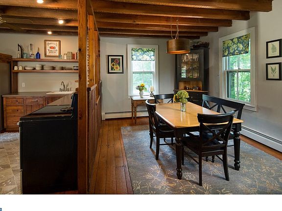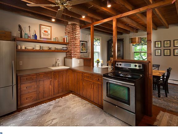 For those looking for the unique and quaint, then Kressman Cottage would be ideal. Located just minutes out of Riegelsville, PA., this private home of stone and wood siding, captures the excitement of country living in a very private setting. The living room features a large stone hearth that was once the center for cooking and bread baking. The artistic stain glass windows add a soothing glow to the room and the plank flooring with a beautiful patina adds additional warmth. The country kitchen is open to the dining room and is bathed in light. The kitchen/dining room area is perfect for small family gatherings where all can be included and is located directly off of the rear patio that is ideal for al fresco dining. The second floor has a master "loft style" bedroom and two guest bedrooms. The property is beautifully landscaped and maintained and the yard has been totally fenced for pets or young ones. Kressman Cottage is only 15 minutes from the fine dining, market place and State Theater of Easton, PA. And, only 25 minutes to historical Bethlehem that offers everything from cutting edge galleries, restaurants, the Sands Casino and Lehigh University.