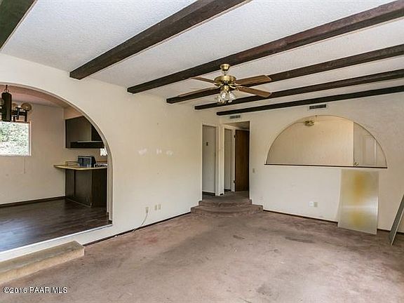 Raised 4/2 ranch with big remodel potential on large private fenced lot for sale in Prescott, AZ near Yavapai Regional Medical Center, Taylor Hicks School, Prescott High School. Beamed ceilings and archways add character, large rear deck, fenced garden area, slump block fireplace with gas insert, one car garage. Sale subject to approval by the US Bankruptcy Court. See Addendum that must be submitted with all offers along with As Is Addendum. No SPDS or Clue.