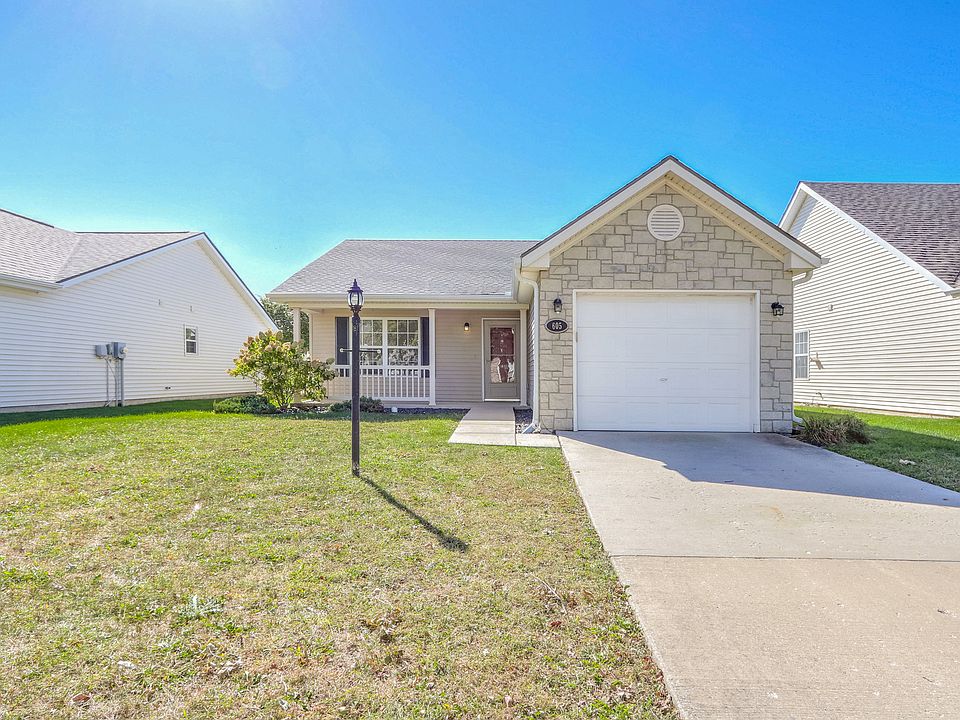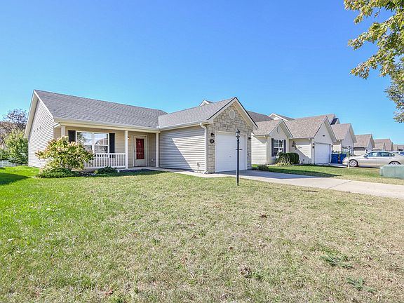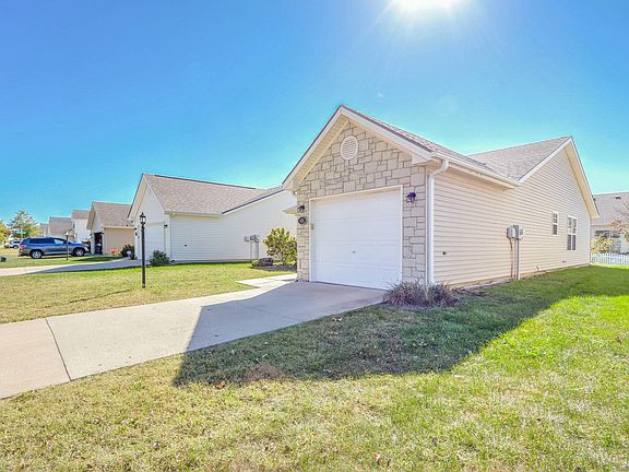 Move right in and make this house your home. Freshly painted interior and garage, New flooring throughout, new kitchen quartz countertop with new sink and faucets to be installed soon. Very well maintained 2 bedrooms, 2 full baths, living room with cathedral ceiling, home with exterior stone accents, master suite with walk-in closet, some updated light fixtures, and a tiled backsplash. Enjoy evenings on the beautiful back patio with a motorized SunSetter retractable awning perfect for providing shade and helping with the energy efficiency of the home with a newer heat pump, newer Roof, newer Washer and dryer, and refrigerator. Located next to shopping, a movie theater, and plenty of options for eating, and interaction, Park, A must-see home.