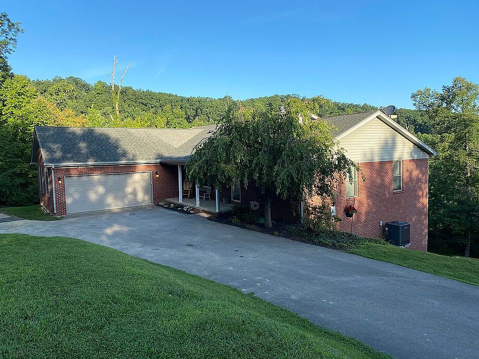 All brick beautiful home w/ 3BR/2BA and approx. 2000sq. ft. Huge unfinished walk out basement. Gorgeous kitchen with granite countertops open up to family room. OPEN FLOOR PLAN! Large master suite with private bath, walk-in closet and custom tile shower. Also showcases a large covered deck perfect for entertaining and relaxing. House has an attached garage as well as an additional free standing garage. The house sits on 17 acres of wooded beauty. The views are stunning.