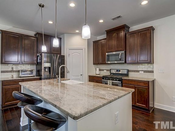 Immaculate & move in ready home in prime Morrisville location. Open floor plan. Handscraped hardwoods throught 1st floor. Spacious family room. Separate dining area. Bright & open kitchen offers quartz tops, center island, farmhouse sink, custom cabs, s/s appliances (gas range) & tile backsplash. Master suite includes tile bath floor & shower w/ separate soaking tub + walk in closet. Loft area. 2 car garage. Steps to greenway & parks. Convenient to RTP, RDU, I-40 & great shopping/dining.