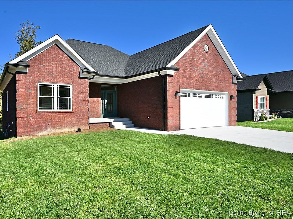 Your Dream home is ready! Be the first to own this stunning brand new home custom-built by Next Level Builders. Located in the highly sought after neighborhood of Kingsland Fields, where luxury meets tranquility. This thoughtfully designed ranch home features an all brick maintenance free exterior with 4 bedrooms, 3 full baths, and finished walkout basement. The incredible first level has an open floor plan with beautiful archways, 9 foot ceilings throughout, a double trey ceiling in the living room with a custom built cabinet and LVP flooring. The kitchen has an abundance of natural light with Amish built cabinets, top of the line LG stainless appliances, Quartz countertops, large kitchen island, under cabinet lighting. and a pantry. Leading off the kitchen is an outdoor covered deck with ceiling fan and Trex flooring and aluminum handrails. The first floor also includes the primary bedroom with an en-suite, two additional spacious bedrooms and a full bath with all closets having automatic switches. The lower level features a large family room with a wet bar and beverage cooler, an additional bedroom, full bath, extra large bonus room, with an additional finished utility room and utility sink. The extra-wide driveway leads to the oversized attached insulated garage with polyasperatic flooring. Quiet country living but just minutes away from expressway, and a quick 10 minute trip to Louisville. Contact me today to schedule your private tour to make this your next home!