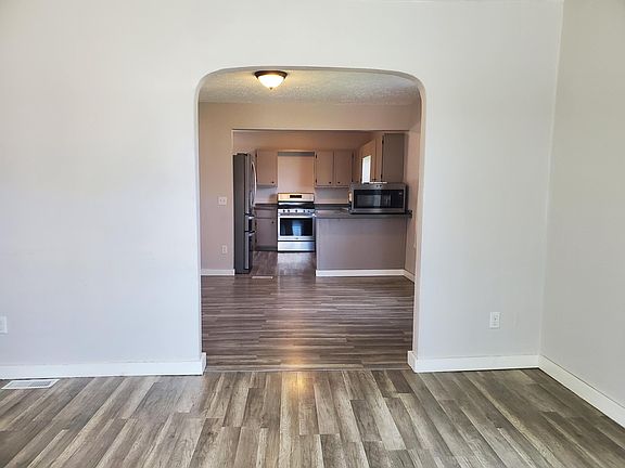 Charming 4 Bedroom, 2 and a half Bath home located on a corner lot. Main level features a nice sized living room, dining room and kitchen. The kitchen appliances convey with the home sale, which includes the gas stove, microwave, refrigerator, and dishwasher. Washer and dryer will also convey. All appliances are around 2 years old or less. The Master Bedroom has a walk-in closet, a separate exit to the outdoor patio area and master bathroom with walk-in shower. The second level includes the 3rd and 4th bedroom along with the half bathroom. Full unfinished basement is open. Furnace and roof is around 2 years of age. Corner lot includes a parking area, beautiful walnut tree and a few garden beds for enjoyment.