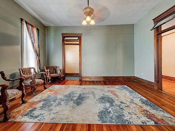 Historical home on Main Street in Calhoun. Updates include new roof, Trane furnace (6 years left on warranty); water heater; upgraded windows; plumbing and electrical (see documents for more comprehensive list of improvements). Home is in solid condition with old style charm. Large spacious rooms with 12-14 feet ceilings downstairs and antique fireplaces with mantels (non-functional) throughout; beautifully refinished hardwood floors, cozy front porch for that afternoon tea or happy hour. Upstairs offers living quarters complete with full kitchen, large living room, two bedrooms, bath and laundry, and abundance of storage. Upstairs has its own outside entrance and could be used as a rental unit for additional income, or perfect as an in-law suite or guest quarters. 22'x 28' detached garage and a large, fenced back yard ideal for family fun.
