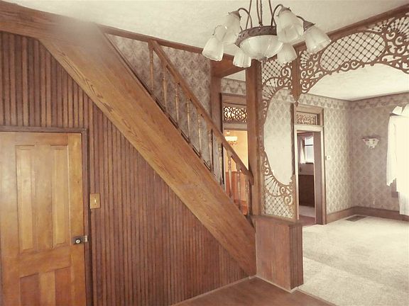 This historical home offers beautiful original woodwork and architecture with an updated kitchen, bathrooms and heating. The master bedroom and main bath are on the first floor. Enjoy the back deck and large side yard, which is a second lot. The detached 1 car garage includes a bay-sized enclosed room with gas log fireplace and cabinets. A yard barn provides additional storage.
