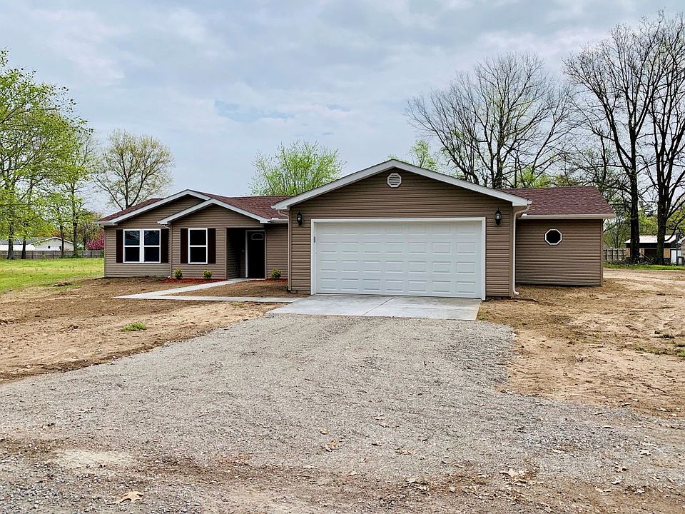 New construction! 1804 sq ft of living space located in small town on a large seeded lot. Large kitchen with breakfast bar, attached to spacious dining area featuring sliding glass doors giving lots of light. Quality flooring throughout for easy care. Master bedroom features walk-in closet for her and large single closet for him. Entry way from garage - that's a TWO car garage - gives room for shoes, coats, etc.
