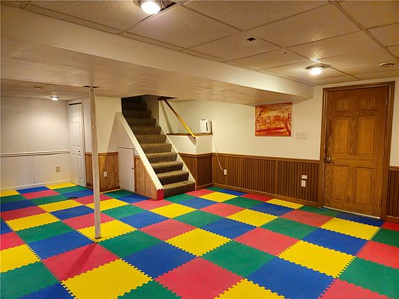 Just minutes from the city, this cozy all brick home with spacious rooms is perfect for a single person or couple. The nearly level back yard is great for entertaining or pets. The nice size eat-in kitchen and adjacent living room with log burning fireplace also lend themselves to entertaining. The front door at the covered porch opens to an entry with a guest closet. The large main bath is truly unique with walls, ceiling and bath surround in Art Deco period Vitrolite Carrara glass tile. An alcove with a window off the bedroom is large enough for a desk or reading chair and lamp. This feature also would provide access to a future addition if desired. With an adjacent half bath, relax in your finished basement with friends or while doing laundry. Also enter the game room directly from the nice sized integral garage. The large storage shed is great for lawn and garden supplies and patio furniture.