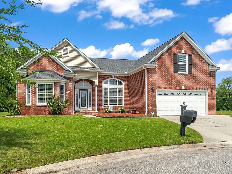 ALL BRICK! TWO PRIMARY SUITES! 4BR/4.5 bath, split floorplan, large Carolina Room, and a Bonus Room! 605 Merton Court is perfectly situated on a large cul-de-sac lot overlooking the lake and natural beauty of Berkshire Forest! A spectacular floorplan anchored by an impressive great room provides square footage galore, two primary suites downstairs, a bonus room with a full bath upstairs and two additional bedrooms downstairs! A kitchen full of cabinets, granite countertops and an expansive peninsula allows comfortable seating, stainless steel appliances, large pantry and a breakfast nook opens to the great room, large open formal dining room and Carolina room. High ceilings, vaulted ceiling and tray ceilings showcase the grandness of 605 Merton Ct. Host intimate parties or fill the house with unlimited guests--either way, you will want to roll out the red carpet as guests enjoy the casual yet distinguished comfort at 605 Merton Court. No expense spared-new architectural shingles 2021, sidewalk, pavers and firepit 2021, fence 2020, one HVAC 2020, extensive insulation upstairs 2020, new washer and dryer 2019, new paint throughout 2019. Generously sized bedrooms offer the perfect opportunity for multipurpose spaces. Low maintenance! Amenities galore! Low HOA dues within a resort style community. Berkshire Forest is loaded with amenities-pools, 32 acre lake, walking trails, outdoor sports courts, fitness center and much more. The floorplan, the solid all brick construction, the Myrtle Beach location & neighborhood you will love forever!