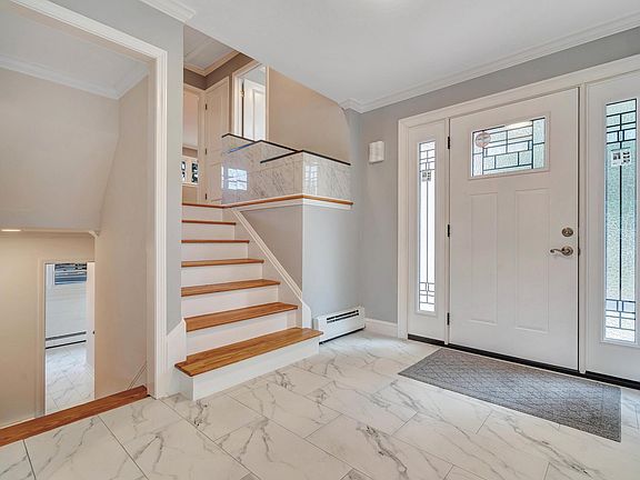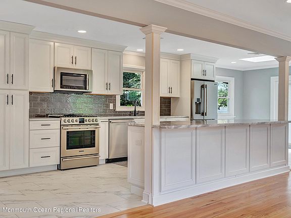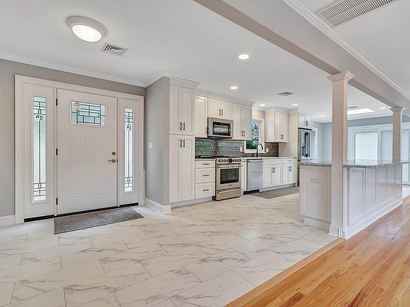 STUNNING doesn't EVEN begin to describe this INCREDIBLE home. CUSTOM multi level home FULLY RENOVATED w/FULL finished basement OFFERING an additional 1368 sqft.BEAUTIFUL foyer welcomes you into an open floor plan of living space. GORGEOUS kitchen FEATURES HUGE center island w/over hang for seating, 42'' cabinets w/CROWN molding, rec lights, subway tile backsplash, QUARTZ counter tops, STAINLESS steel appliances, skylight over seating area, slider to rear yard, crown molding. Kitchen is open to LARGE living room or could be living/dining room combo w/refinished hard wood floors, GAS fireplace w/beautiful stone surround, crown molding, rec lights. MASTER SUITE is situated on the upper level with 2 additional bedrooms all featuring hardwood floors. MASTER has walk in closet & additional